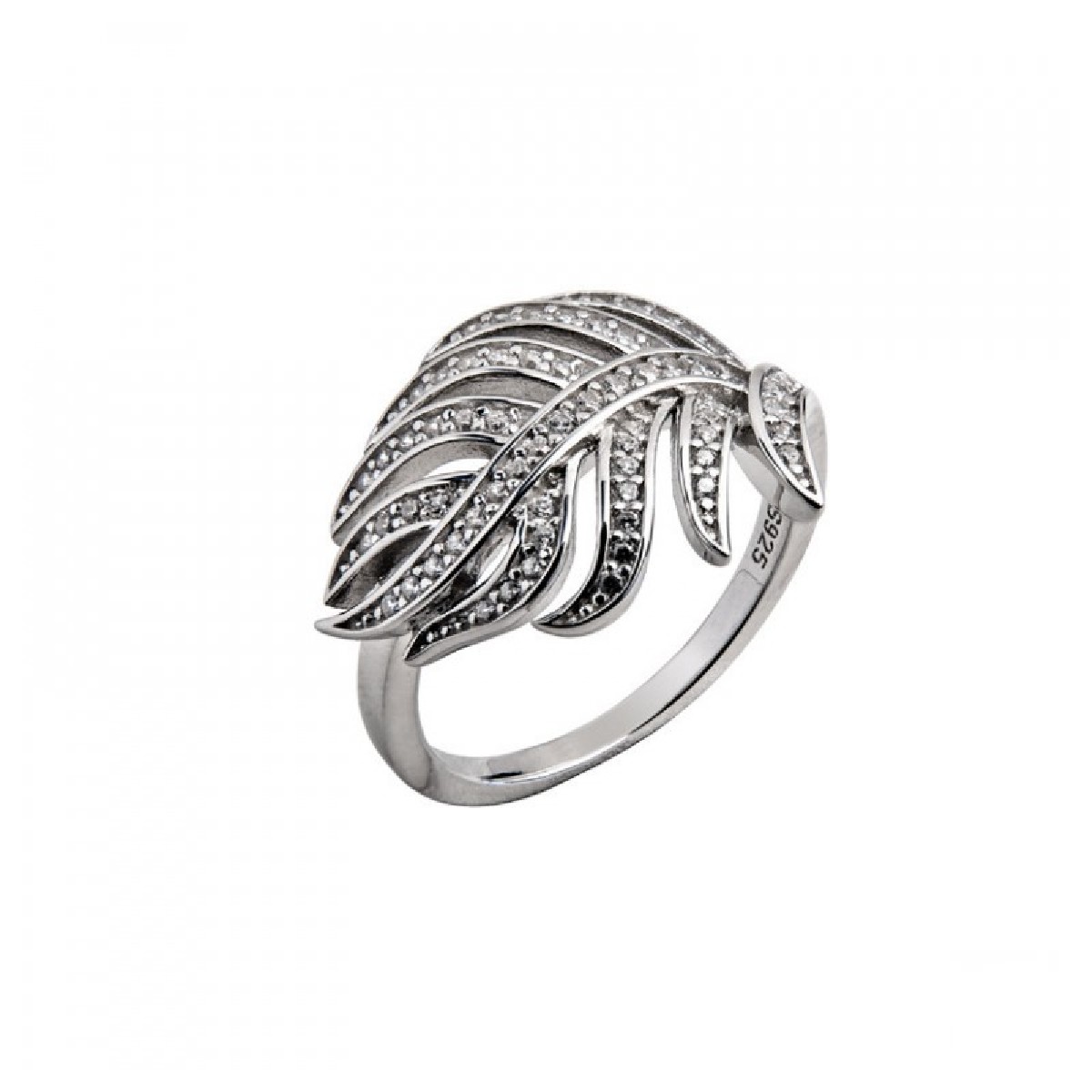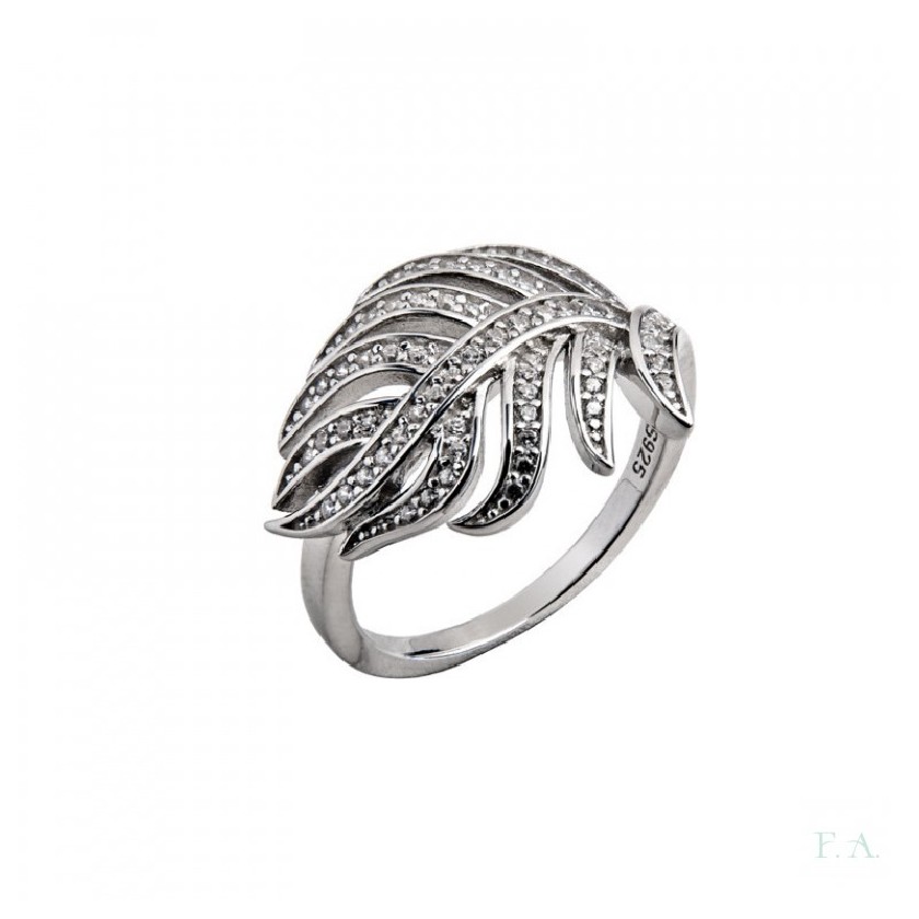 Anel Yvonne Folha c/ Zircónias - Prata 925 (4,30g)