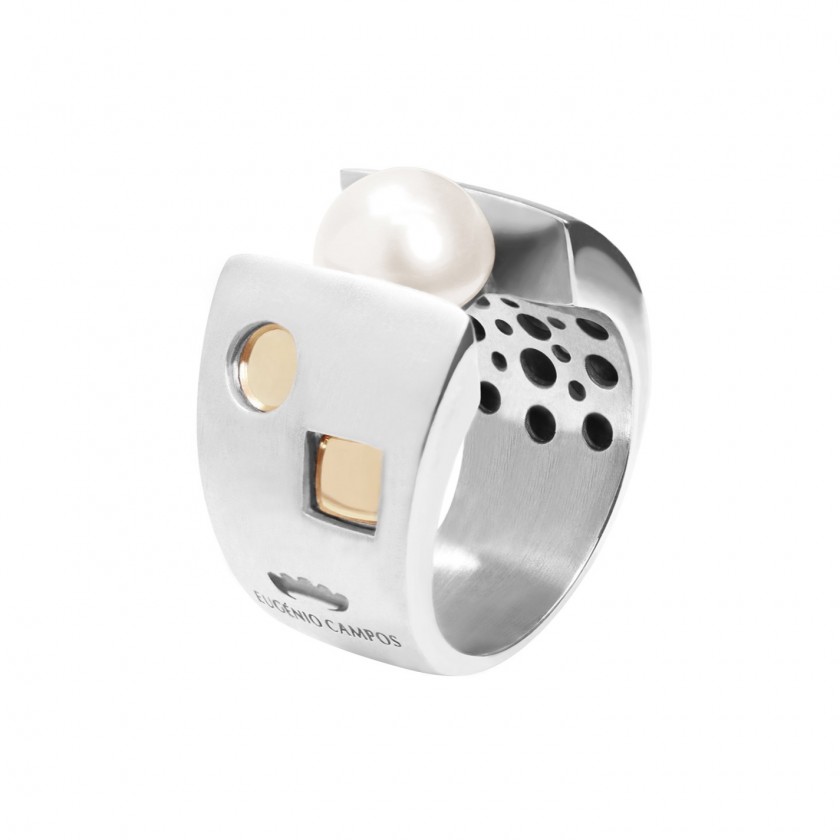 Anel Balance em prata de lei e ouro 9 quilates, com pérola natural. Joalharia inspirada no equilíbrio que cria e mantém a vida.