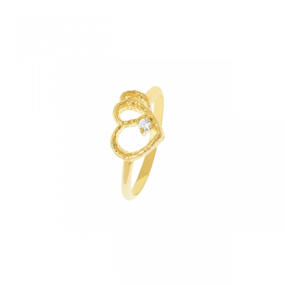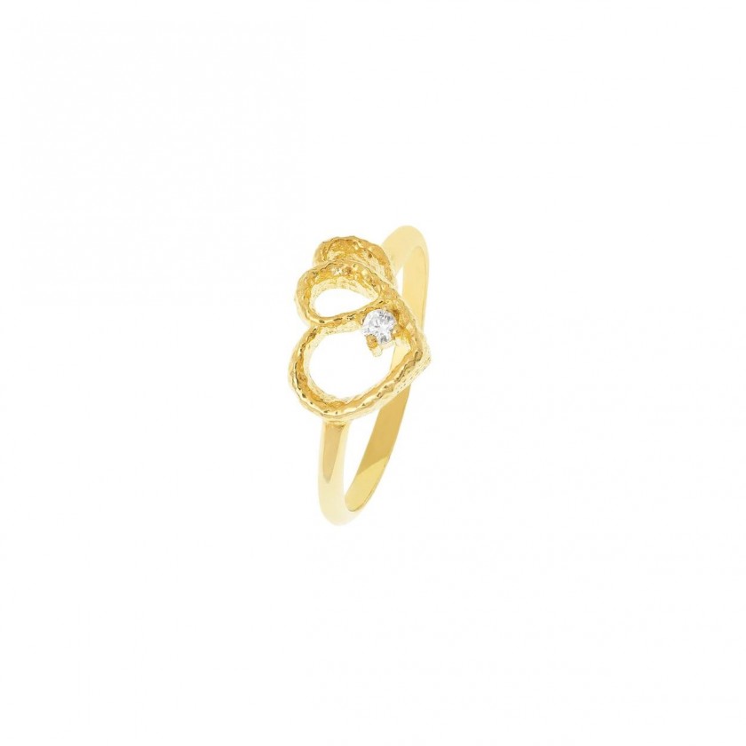 Anel História de Amor, em prata de lei, banhado a ouro amarelo, com zircónias branca. Joia com finas linhas que entrelaçadas criam um delicado coração. A zircónia no centro representa o ponto focal da paixão. História de Amor é o testemunho da beleza única que cada casal partilha.