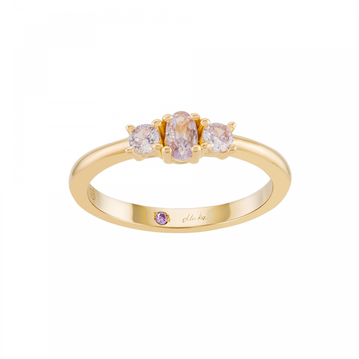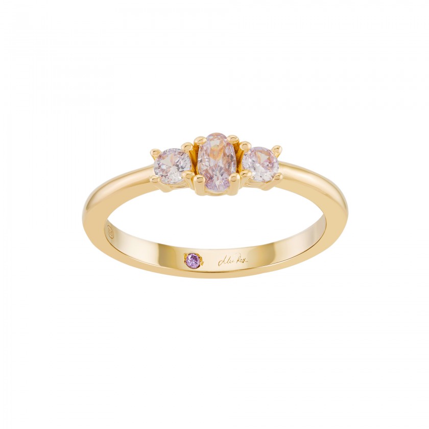 Anel UNIKE Mia Rose 3 Stones Lavander - Prata Dourada 925