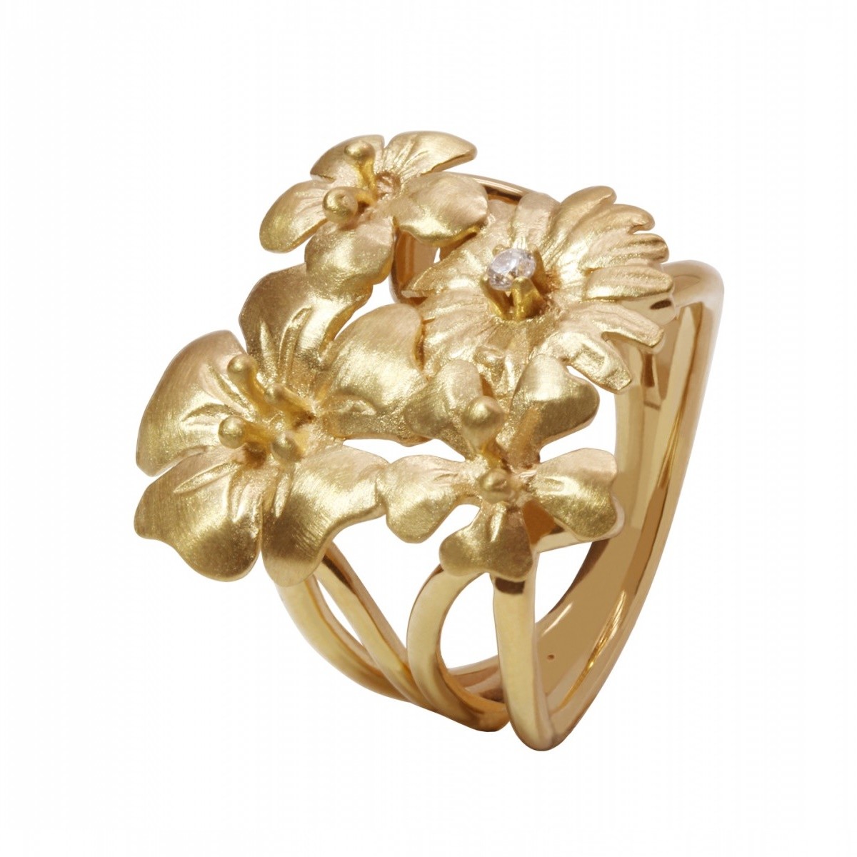 Uma coleção de joalharia dedicada à família e natureza, com flores. Anel Family em prata de lei, banhado a ouro amarelo, com zircónia.