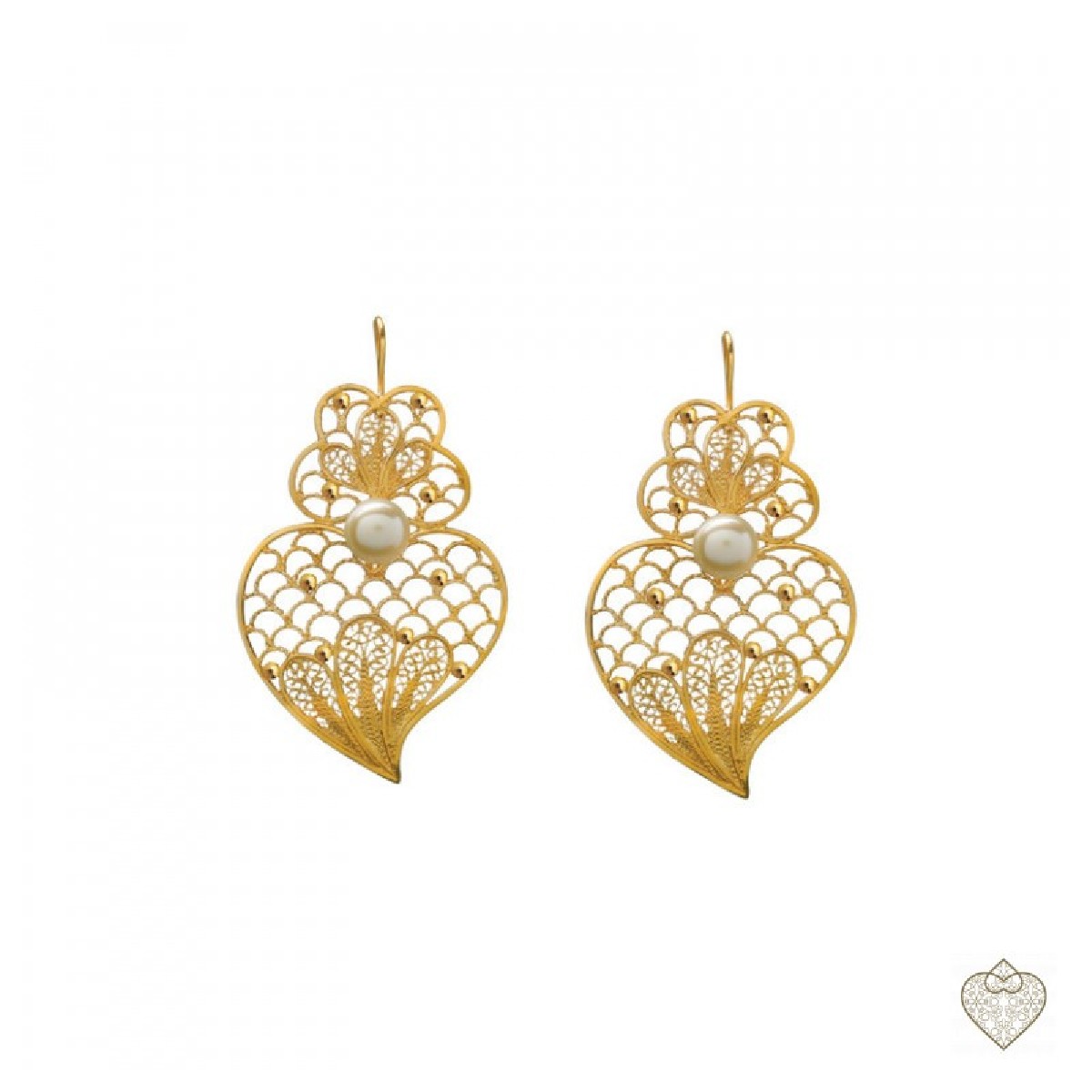Brincos Coração Viana 6cm Perolas - Prata 925 (14,00g)