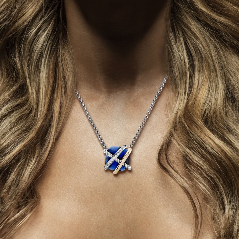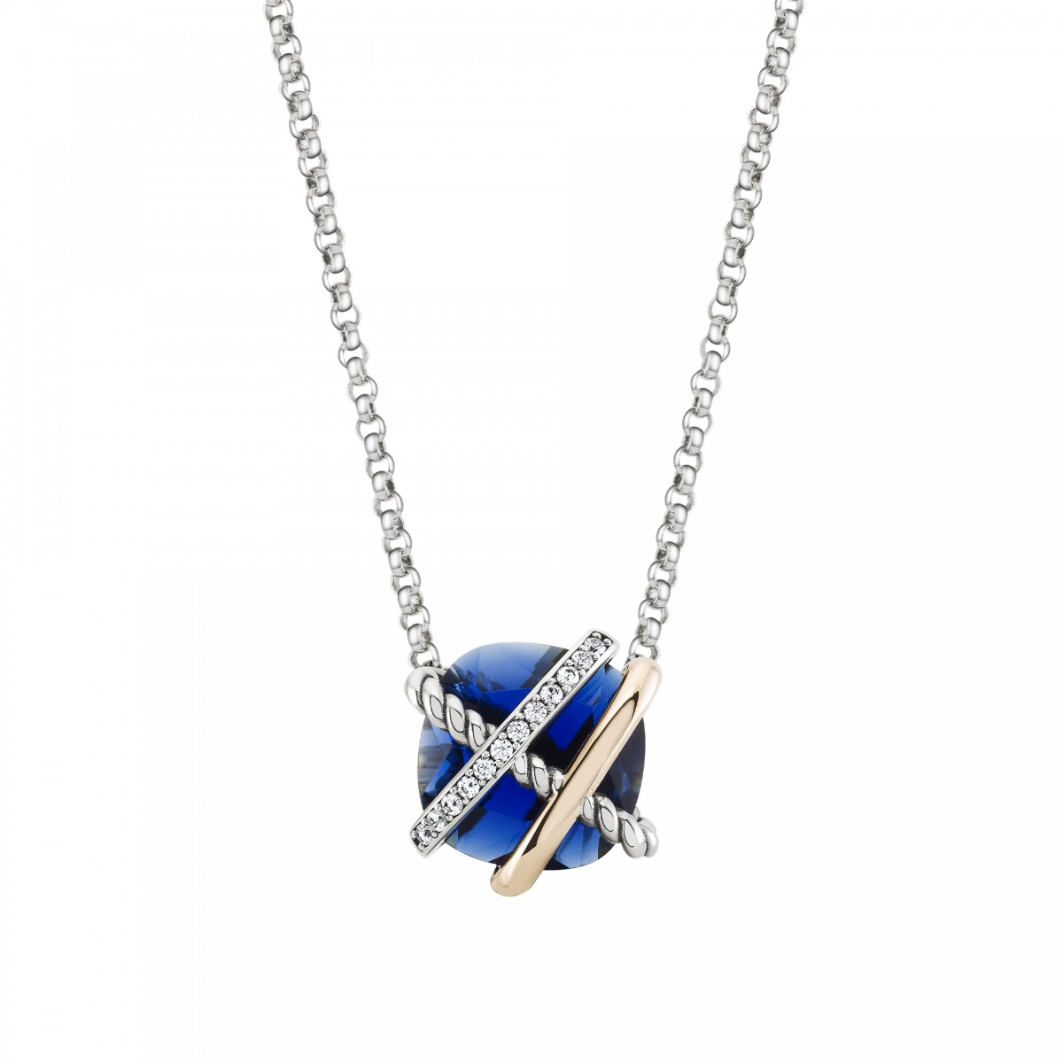 Joia em prata e ouro, com zircónia azul que a irá remeter para um dos locais mais encantados da Bahia, Brasil. Conhecido como "lago encantado" é um local de contemplação e de uma beleza extrema, que hipnotiza qualquer um. Um símbolo de raridade e atração. Este colar irá dar-lhe uma beleza hipnotizante.