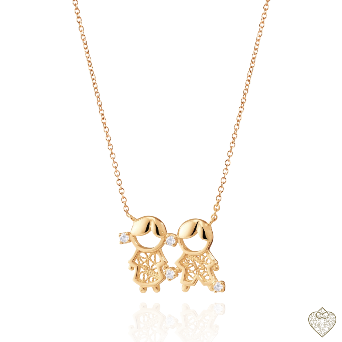 Colar Filigrana Menina & Menino - Prata Dourada 925 (3,00g)