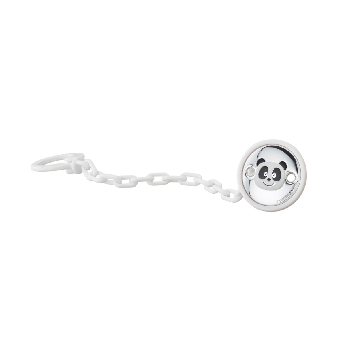 Corrente de Chupeta PANDA Pegadas - Prata Bilaminada