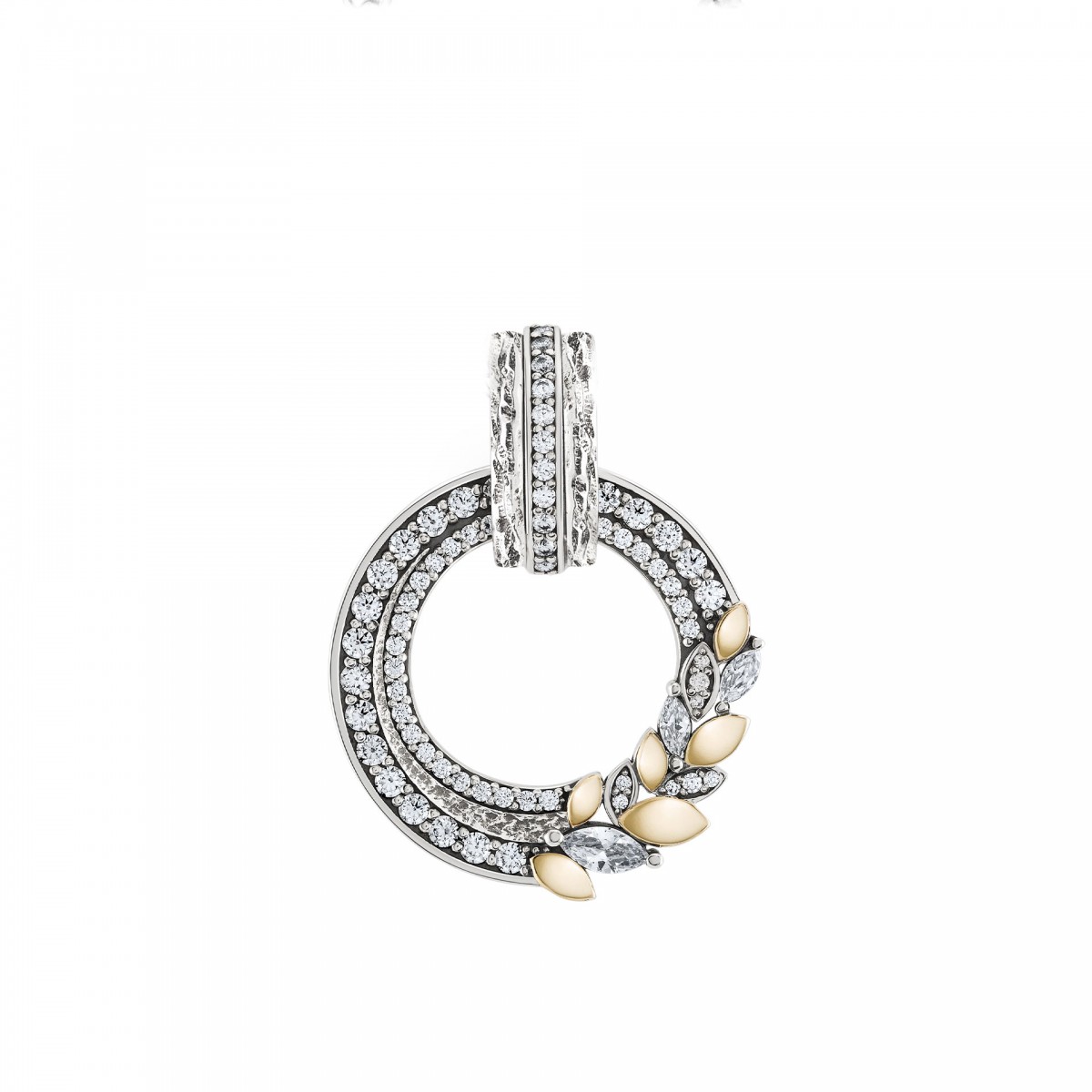 Pendente em prata e ouro, com zircónias em formato de espiga. As joias da coleção Secret Garden são desenhadas para as mulheres que se desixam inspirar pelas coisas mais simples e puras da vida Nomeadamente, o lugar mais escondido, simples e bonito.