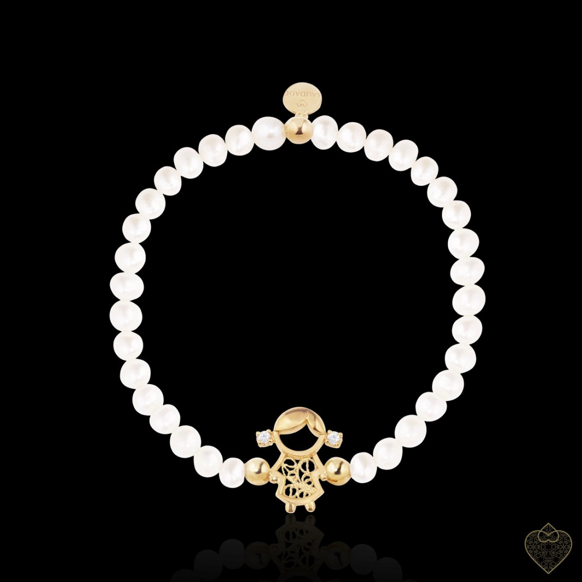 Pulseira Filigrana Perola Menina - Prata Dourada 925 (3,50g)