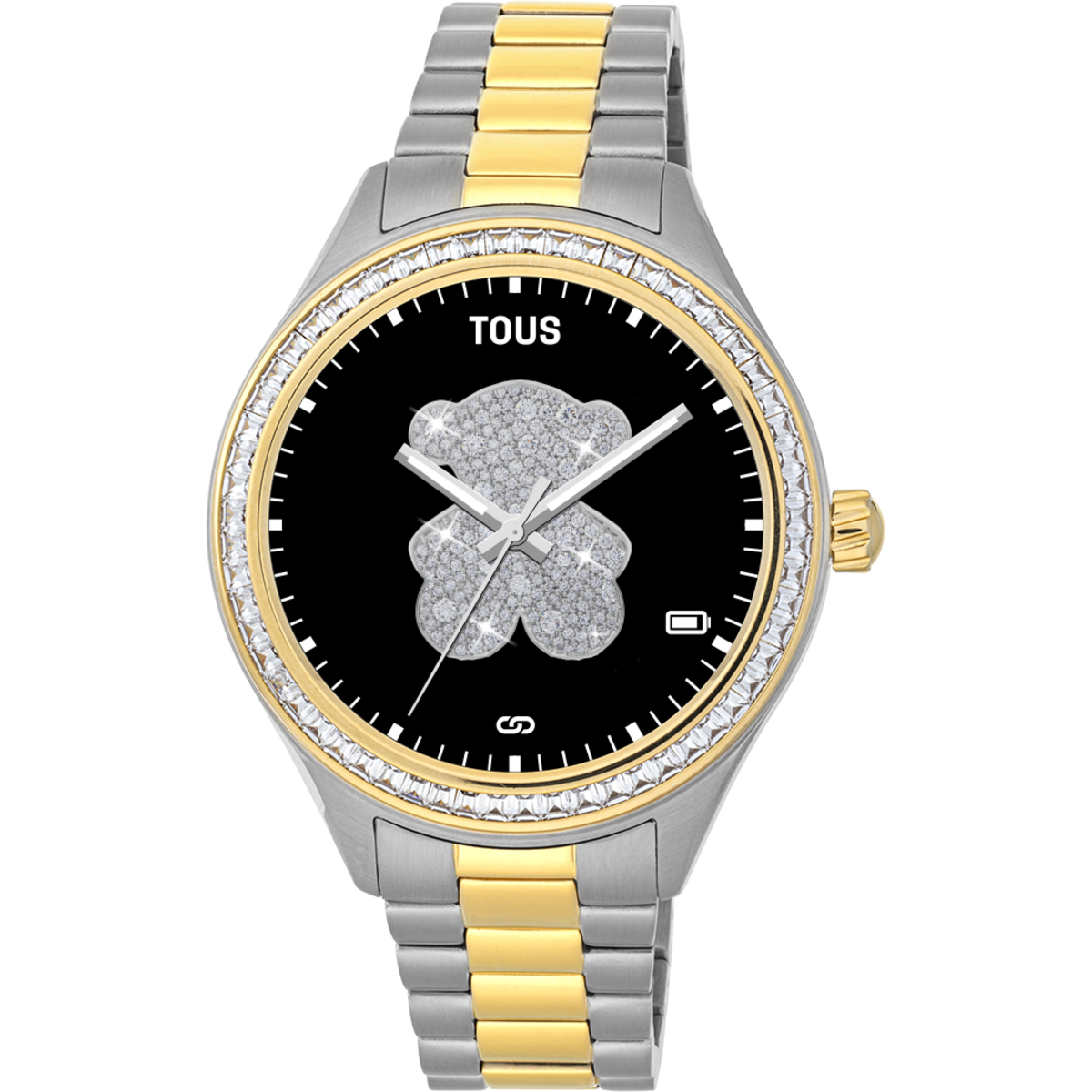 O Tous T-Connect Shine brilha graças às zircónias cúbicas rainbow que decoram o bisel. Este smartwatch oferece 12 mostradores Tous e um mostrador intercambiável através da app TOUS Wear. Inclui inúmeras funções como horas, data, actividade diária com contador de passos, contador de calorias, distância percorrida em milhas ou km, vários modos de desporto (caminhada, corrida, escalada, ciclismo, remo, HIIT, yoga, entre outros), alarme com vibração, frequência cardíaca, monitorizador do sono, meteorologia, cronógrafo de 1/100 segundo, 3 jogos e notificações (chamadas, WhatsApp, email, SMS, Facebook, etc.), controle de música e fotografia, modo relax e ciclo menstrual. Fecho com botões de pressão. Compatível com Android 7.0 e iOS 12.0 ou superior.